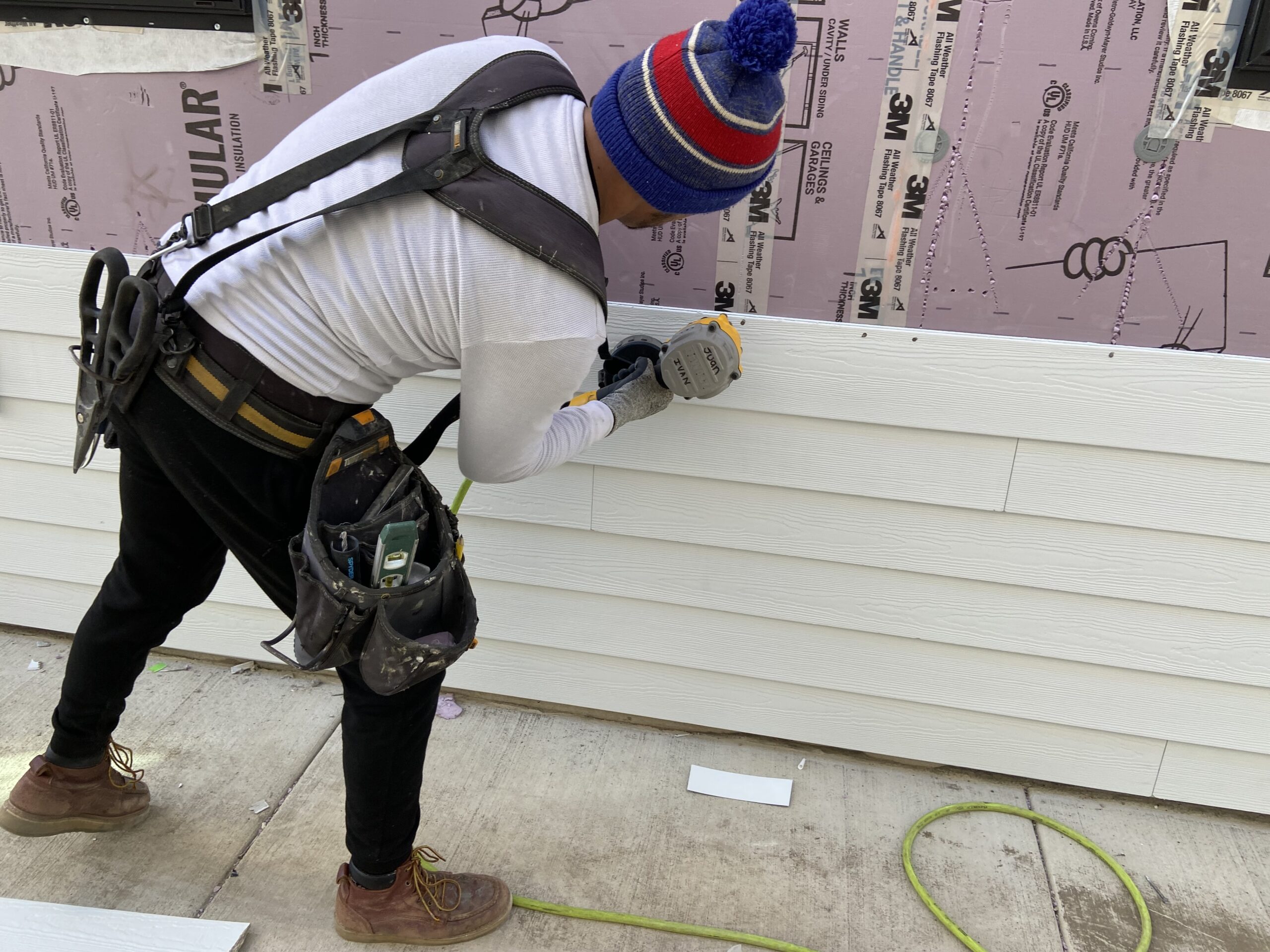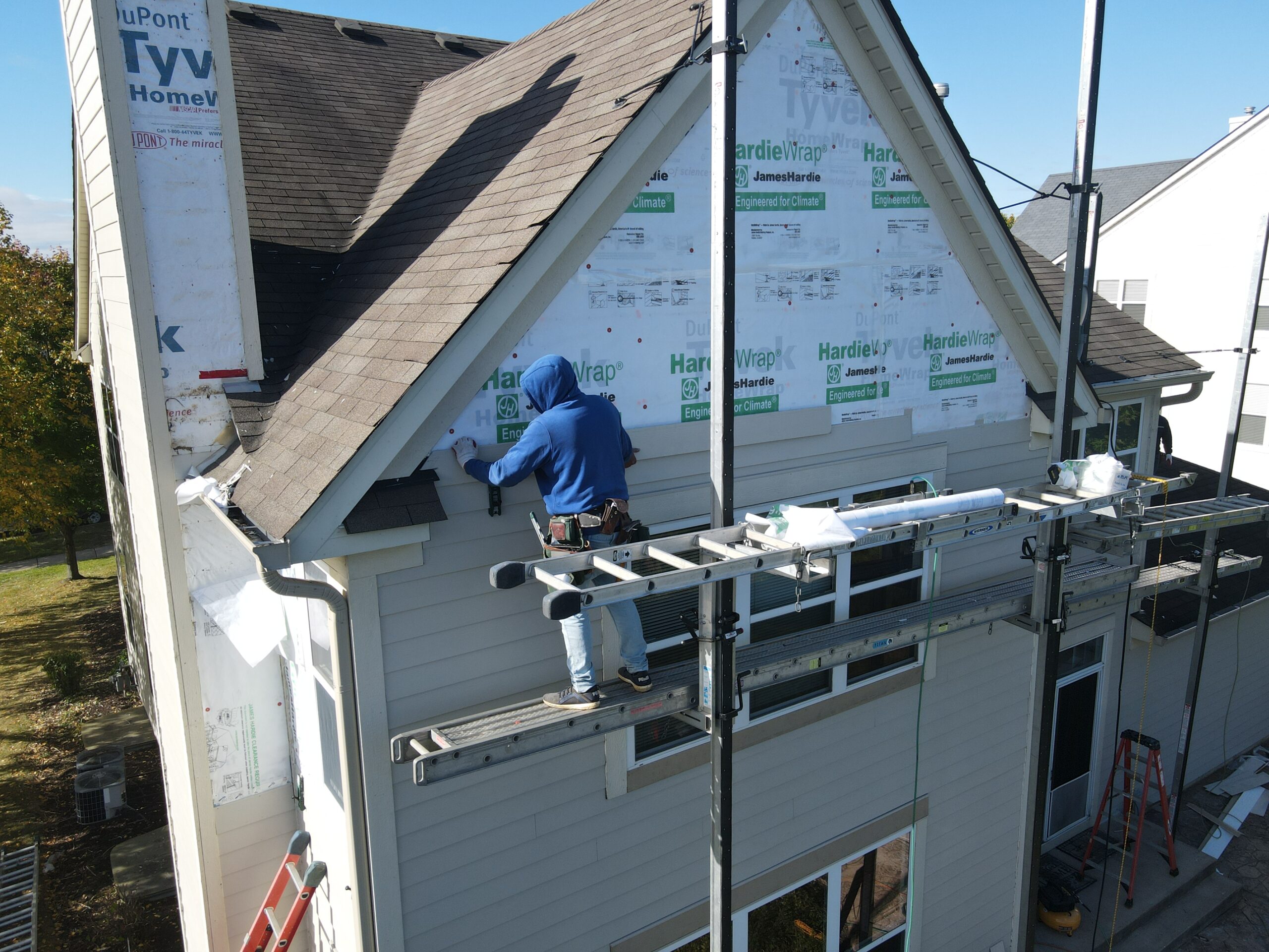 New construction siding project in Chicago, Illinois. We installed James Hardie siding with board and batten.